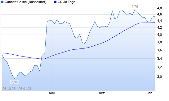 Mit dem Anstieg auf 4,42 EUR hat die Gannett-Aktie am 05.01.2026 die 38-Tage-Linie nach oben gekreuzt.Die Gannett-Aktie befindet sich seit dem 29.10.2025 im langfristigen Aufwärtstrend ...weiterlesen