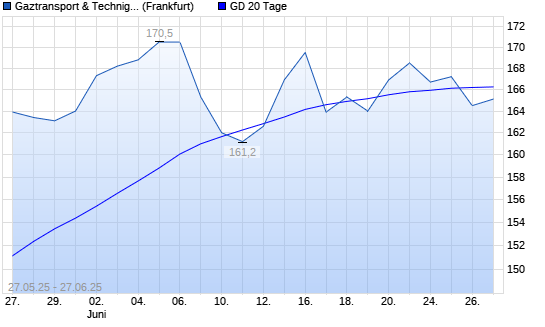 Mit dem Rücksetzer auf 165,20 EUR hat die Gaztransport & Technigaz-Aktie am 26.06.2025 die 20-Tage-Linie nach unten gekreuzt.Die Gaztransport & Technigaz-Aktie befindet sich ...weiterlesen