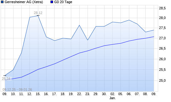 Mit dem Rücksetzer auf 27,34 EUR hat die Gerresheimer-Aktie am 08.01.2026 die 20-Tage-Linie nach unten gekreuzt.Die Gerresheimer-Aktie befindet sich seit dem 20.09.2024 ...weiterlesen