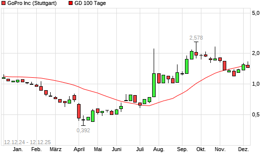Mit dem Rücksetzer auf 1,45 EUR hat die GoPro-Aktie am 11.12.2025 die 100-Tage-Linie nach unten gekreuzt.Die GoPro-Aktie befindet sich seit dem 22.07.2025 im langfristigen Aufwärtstrend ...weiterlesen