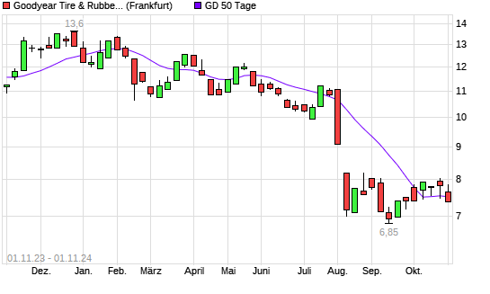 Mit dem Rücksetzer auf 7,42 EUR hat die Goodyear-Aktie am 31.10.2024 die 50-Tage-Linie nach unten gekreuzt.Die Goodyear-Aktie befindet sich seit dem 20.05.2024 im langfristigen Abwärtstrend ...weiterlesen