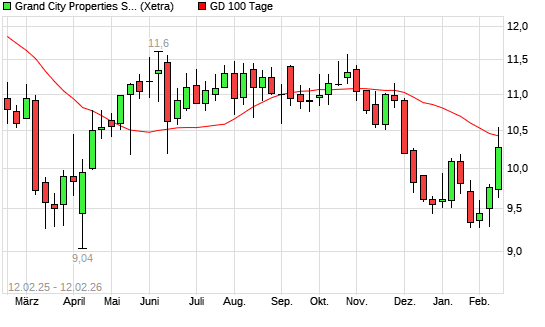 Mit dem Anstieg auf 10,52 EUR hat die Grand City Properties-Aktie am 11.02.2026 die 100-Tage-Linie nach oben gekreuzt.Die Grand City Properties-Aktie befindet sich seit dem 01.12.2025 im langfristigen ...weiterlesen