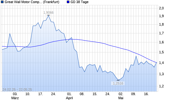 Mit dem Rücksetzer auf 1,36 EUR hat die Great Wall Motor Company-Aktie am 21.05.2025 die 38-Tage-Linie nach unten gekreuzt.Die Great Wall Motor Company-Aktie befindet sich seit dem 04.04.2025 ...weiterlesen