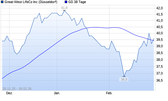 Mit dem Rücksetzer auf 39,60 EUR hat die Great-West LifeCo-Aktie am 25.02.2026 die 38-Tage-Linie nach unten gekreuzt.Die Great-West LifeCo-Aktie befindet sich seit dem 22.09.2025 ...weiterlesen