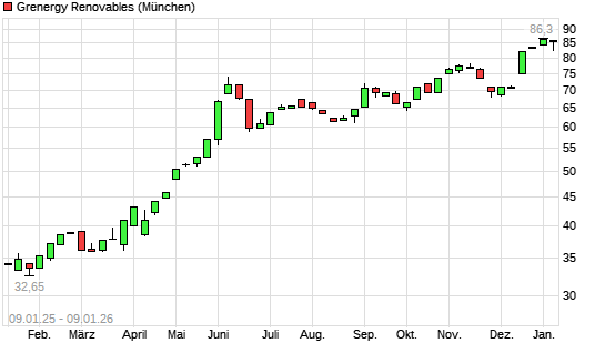 Mit dem Anstieg auf 85,20 EUR hat die Grenergy Renovables-Aktie (ISIN ES0105079000) am 08.01.2026 ein neues All-Time-High erreicht und damit den Kurs vom 01.01.2026 eingestellt.Die Grenergy ...weiterlesen