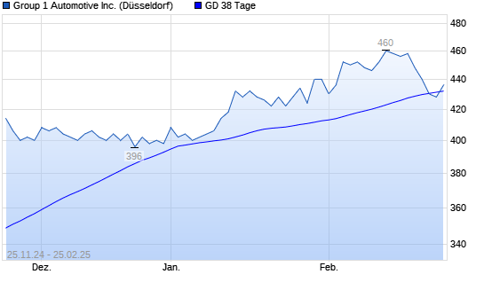 Mit dem Rücksetzer auf 428,00 EUR hat die Group 1 Automotive-Aktie am 24.02.2025 die 38-Tage-Linie nach unten gekreuzt.Die Group 1 Automotive-Aktie befindet sich seit dem 12.07.2024 im ...weiterlesen