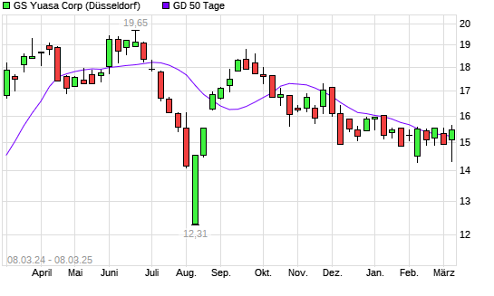 Mit dem Anstieg auf 15,54 EUR hat die Gs Yuasa-Aktie am 07.03.2025 die 50-Tage-Linie nach oben gekreuzt.Die Gs Yuasa-Aktie befindet sich seit dem 16.10.2024 im langfristigen Abwärtstrend und ...weiterlesen