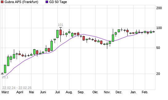 Mit dem Anstieg auf 86,40 EUR hat die Gubra-Aktie am 21.02.2025 die 50-Tage-Linie nach oben gekreuzt.Der Abstand zur 200-Tage-Linie beträgt aktuell +17,40%. ##trendBox## Die Gubra-Aktie ...weiterlesen
