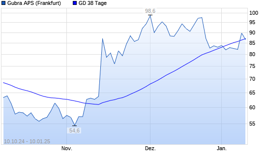 Mit dem Anstieg auf 89,80 EUR hat die Gubra-Aktie am 09.01.2025 die 38-Tage-Linie nach oben gekreuzt.Der Abstand zur 200-Tage-Linie beträgt aktuell +35,29%. ##trendBox## Die Gubra-Aktie ...weiterlesen