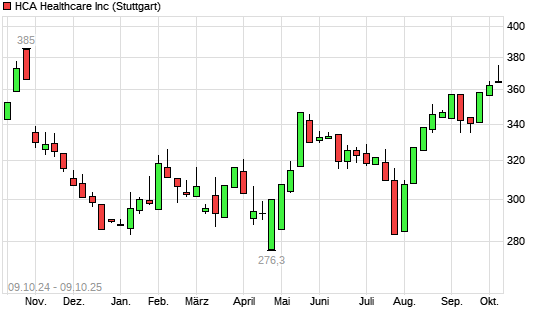Mit dem Anstieg auf 374,40 EUR hat die HCA Holdings-Aktie (ISIN US40412C1018) am 08.10.2025 ein neues 6-Monats-Hoch erreicht und damit den Kurs vom 07.10.2025 eingestellt.Die ...weiterlesen