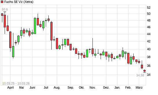 Mit dem Rücksetzer auf 34,96 EUR hat die Fuchs SE Vz-Aktie (ISIN DE000A3E5D64) am 09.03.2026 ein neues 12-Monats-Tief erreicht und damit den Kurs vom 06.03.2026 eingestellt.Die ...weiterlesen