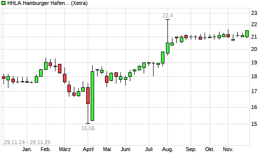Mit dem Anstieg auf 21,40 EUR hat die HHLA-Aktie (ISIN DE000A0S8488) am 28.11.2025 ein neues 3-Jahres-Hoch erreicht und damit den Kurs vom 20.10.2025 eingestellt.Die HHLA-Aktie befindet sich ...weiterlesen