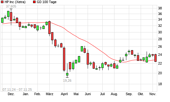 Mit dem Anstieg auf 23,01 EUR hat die HP-Aktie am 06.11.2025 die 100-Tage-Linie nach oben gekreuzt.Die HP-Aktie befindet sich seit dem 26.02.2025 im langfristigen Abwärtstrend und hat in diesem ...weiterlesen