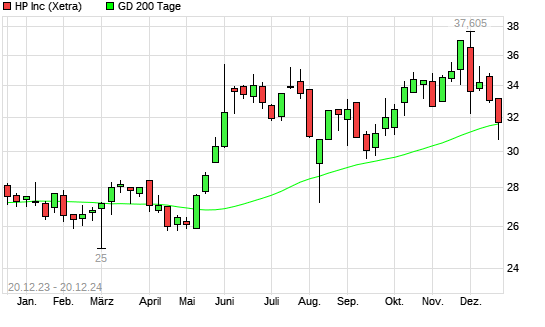 Mit dem Rücksetzer auf 31,35 EUR hat die HP-Aktie am 19.12.2024 die 200-Tage-Linie nach unten gekreuzt.Die HP-Aktie befand sich seit dem 09.05.2024 im langfristigen Abwärtstrend und hat ...weiterlesen