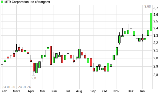 Mit dem Anstieg auf 3,62 EUR hat die MTR Corporation-Aktie (ISIN HK0066009694) am 23.01.2026 ein neues 12-Monats-Hoch erreicht und damit den Kurs vom 22.01.2026 eingestellt.Die MTR Corporation-Aktie ...weiterlesen