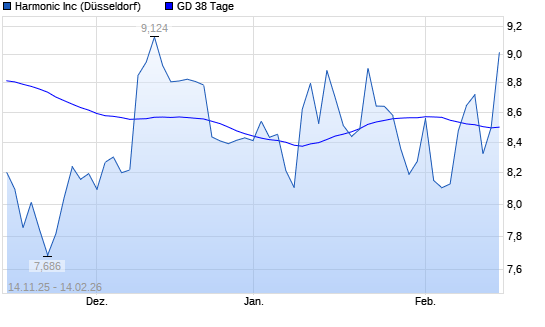Mit dem Anstieg auf 8,39 EUR hat die Harmonic-Aktie am 13.02.2026 die 38-Tage-Linie nach oben gekreuzt.Die Harmonic-Aktie befindet sich seit dem 09.02.2026 im langfristigen Aufwärtstrend und ...weiterlesen