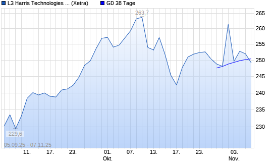 Mit dem Rücksetzer auf 247,20 EUR hat die Harris-Aktie am 06.11.2025 die 38-Tage-Linie nach unten gekreuzt.Die Harris-Aktie befindet sich seit dem 26.05.2025 im langfristigen Aufwärtstrend ...weiterlesen