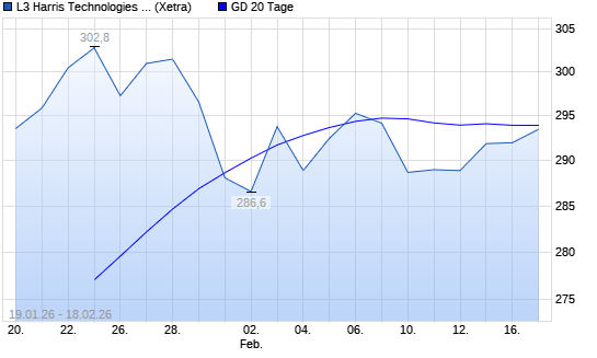 Mit dem Anstieg auf 294,60 EUR hat die Harris-Aktie am 17.02.2026 die 20-Tage-Linie nach oben gekreuzt.Die Harris-Aktie befindet sich seit dem 26.05.2025 im langfristigen Aufwärtstrend ...weiterlesen