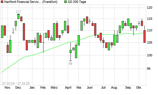 Mit dem Rücksetzer auf 107,00 EUR hat die Hartford Financial Services Group-Aktie am 16.10.2025 die 200-Tage-Linie nach unten gekreuzt.Die Hartford Financial Services Group-Aktie befand ...weiterlesen