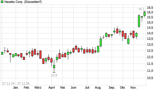 Mit dem Anstieg auf 16,10 EUR hat die Haseko-Aktie (ISIN JP3768600003) am 26.11.2025 ein neues 10-Jahres-Hoch erreicht und damit den Kurs vom 13.11.2025 eingestellt.Die Haseko-Aktie befindet ...weiterlesen