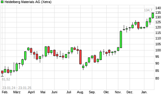Mit dem Anstieg auf 133,55 EUR hat die Heidelberg Materials-Aktie (ISIN DE0006047004) am 22.01.2025 ein neues All-Time-High erreicht und damit den Kurs vom 21.01.2025 eingestellt.Die Heidelberg ...weiterlesen