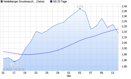 Mit dem Rücksetzer auf 2,15 EUR hat die Heidelberger Druckmaschinen-Aktie am 14.10.2025 die 20-Tage-Linie nach unten gekreuzt.Die Heidelberger Druckmaschinen-Aktie befindet sich seit dem ...weiterlesen