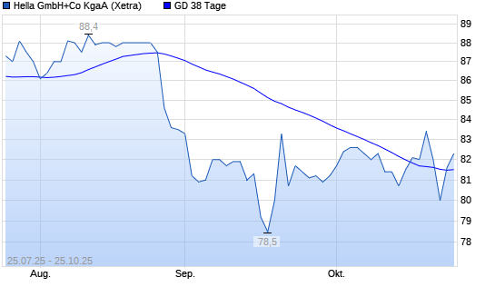 Mit dem Anstieg auf 81,20 EUR hat die Hella-Aktie am 24.10.2025 die 38-Tage-Linie nach oben gekreuzt.Die Hella-Aktie befindet sich seit dem 25.08.2025 im langfristigen Abwärtstrend und hat in ...weiterlesen