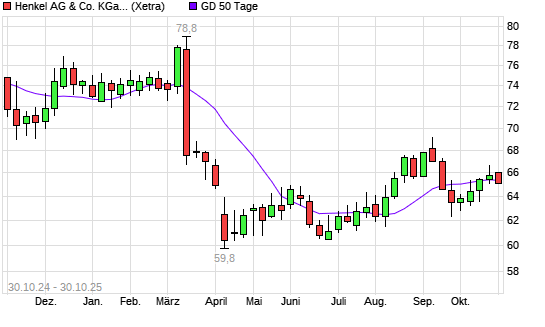 Mit dem Rücksetzer auf 64,95 EUR hat die Henkel St-Aktie am 29.10.2025 die 50-Tage-Linie nach unten gekreuzt.Die Henkel St-Aktie befindet sich seit dem 23.10.2025 im langfristigen Abwärtstrend ...weiterlesen
