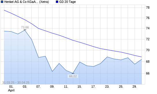 Mit dem Rücksetzer auf 68,06 EUR hat die Henkel Vz-Aktie am 29.04.2025 die 20-Tage-Linie nach unten gekreuzt.Die Henkel Vz-Aktie befindet sich seit dem 11.03.2025 im ...weiterlesen