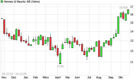 Mit dem Anstieg auf 16,40 EUR hat die Hennes & Mauritz-Aktie (ISIN SE0000106270) am 23.10.2025 ein neues 12-Monats-Hoch erreicht und damit den Kurs vom 06.10.2025 eingestellt.Die Hennes ...weiterlesen