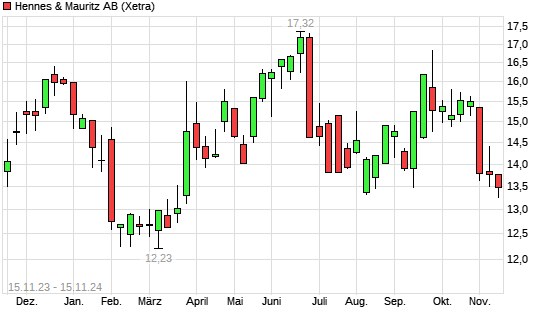 Mit dem Rücksetzer auf 13,28 EUR hat die Hennes & Mauritz-Aktie (ISIN SE0000106270) am 14.11.2024 ein neues 6-Monats-Tief erreicht und damit den Kurs vom 12.11.2024 eingestellt.Die Hennes ...weiterlesen