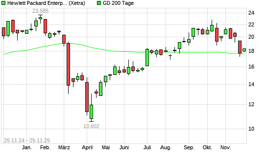 Mit dem Anstieg auf 17,92 EUR hat die Hewlett Packard Enterprise-Aktie am 24.11.2025 die 200-Tage-Linie nach oben gekreuzt.Die Hewlett Packard Enterprise-Aktie befand sich seit dem 21.11.2025 ...weiterlesen
