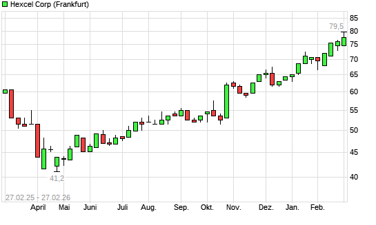 Mit dem Anstieg auf 80,50 EUR hat die Hexcel-Aktie (ISIN US4282911084) am 02.03.2026 ein neues All-Time-High erreicht und damit den Kurs vom 26.02.2026 eingestellt.Die ...weiterlesen