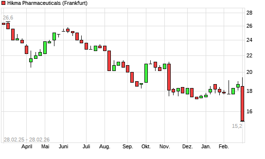 Mit dem Rücksetzer auf 15,20 EUR hat die Hikma Pharmaceuticals-Aktie (ISIN GB00B0LCW083) am 27.02.2026 ein neues 3-Jahres-Tief erreicht und damit den Kurs vom ...weiterlesen