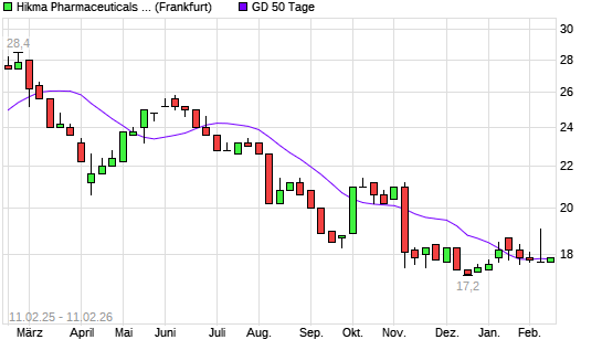 Mit dem Anstieg auf 17,80 EUR hat die Hikma Pharmaceuticals-Aktie am 10.02.2026 die 50-Tage-Linie nach oben gekreuzt.Die Hikma Pharmaceuticals-Aktie befindet sich seit dem 26.06.2025 ...weiterlesen