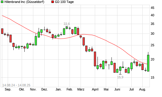 Mit dem Anstieg auf 20,00 EUR hat die Hillenbrand-Aktie am 13.08.2025 die 100-Tage-Linie nach oben gekreuzt.Die Hillenbrand-Aktie befindet sich seit dem 20.02.2025 im langfristigen Abwärtstrend ...weiterlesen