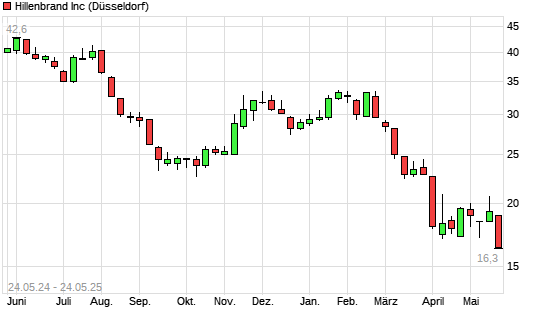 Mit dem Rücksetzer auf 16,80 EUR hat die Hillenbrand-Aktie (ISIN US4315711089) am 23.05.2025 ein neues 5-Jahres-Tief erreicht und damit den Kurs vom 09.04.2025 eingestellt.Die Hillenbrand-Aktie ...weiterlesen