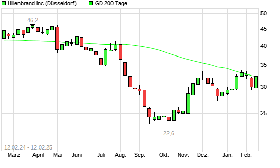 Mit dem Anstieg auf 32,20 EUR hat die Hillenbrand-Aktie am 11.02.2025 die 200-Tage-Linie nach oben gekreuzt.Die Hillenbrand-Aktie befand sich seit dem 07.02.2025 im langfristigen Abwärtstrend ...weiterlesen