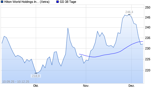 Mit dem Rücksetzer auf 230,50 EUR hat die Hilton-Aktie am 09.12.2025 die 38-Tage-Linie nach unten gekreuzt.Die Hilton-Aktie befindet sich seit dem 12.11.2025 im langfristigen Aufwärtstrend ...weiterlesen