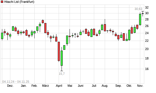 Mit dem Anstieg auf 30,01 EUR hat die Hitachi-Aktie (ISIN JP3788600009) am 03.11.2025 ein neues All-Time-High erreicht und damit den Kurs vom 31.10.2025 eingestellt.Die Hitachi-Aktie befindet ...weiterlesen