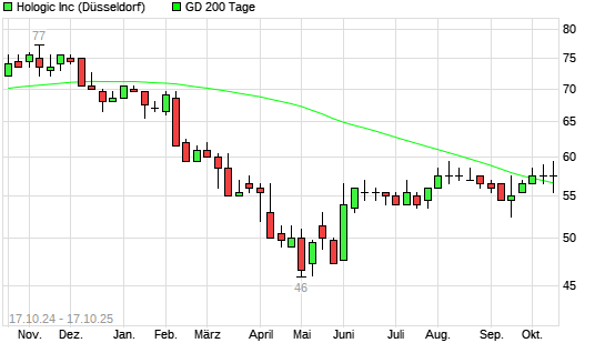 Mit dem Anstieg auf 58,00 EUR hat die Hologic-Aktie am 16.10.2025 die 200-Tage-Linie nach oben gekreuzt.Die Hologic-Aktie befand sich seit dem 13.10.2025 im langfristigen Abwärtstrend und hat ...weiterlesen