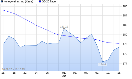 Mit dem Rücksetzer auf 176,04 EUR hat die Honeywell-Aktie am 15.10.2025 die 20-Tage-Linie nach unten gekreuzt.Die Honeywell-Aktie befindet sich seit dem 24.07.2025 im langfristigen Abwärtstrend ...weiterlesen