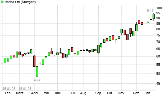Mit dem Anstieg auf 97,50 EUR hat die Horiba-Aktie (ISIN JP3853000002) am 14.01.2026 ein neues 12-Monats-Hoch erreicht und damit den Kurs vom 13.01.2026 eingestellt.Die Horiba-Aktie befindet ...weiterlesen