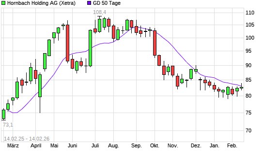 Mit dem Rücksetzer auf 81,00 EUR hat die Hornbach Holding-Aktie am 13.02.2026 die 50-Tage-Linie nach unten gekreuzt.Die Hornbach Holding-Aktie befindet sich seit dem 08.10.2025 ...weiterlesen