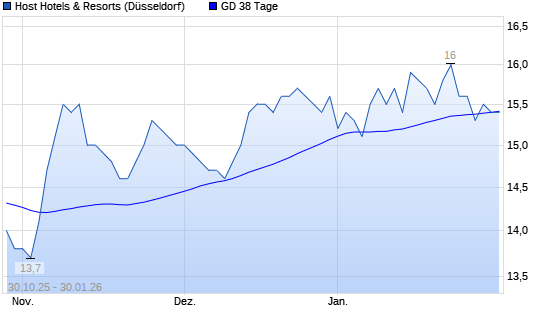 Mit dem Rücksetzer auf 15,10 EUR hat die Host Hotels & Resorts-Aktie am 29.01.2026 die 38-Tage-Linie nach unten gekreuzt.Die Host Hotels & Resorts-Aktie befindet sich seit dem 06.11.2025 ...weiterlesen