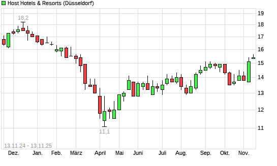 Mit dem Anstieg auf 15,30 EUR hat die Host Hotels & Resorts-Aktie (ISIN US44107P1049) am 12.11.2025 ein neues 6-Monats-Hoch erreicht und damit den Kurs vom 10.11.2025 eingestellt.Die Host Hotels ...weiterlesen