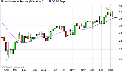 Mit dem Rücksetzer auf 16,00 EUR hat die Host Hotels & Resorts-Aktie am 19.03.2026 die 50-Tage-Linie nach unten gekreuzt.Die Host Hotels & Resorts-Aktie befindet sich seit ...weiterlesen
