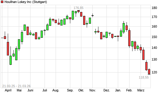 Mit dem Rücksetzer auf 118,75 EUR hat die Houlihan Lokey-Aktie (ISIN US4415931009) am 20.03.2026 ein neues 12-Monats-Tief erreicht und damit den Kurs vom 19.03.2026 ...weiterlesen