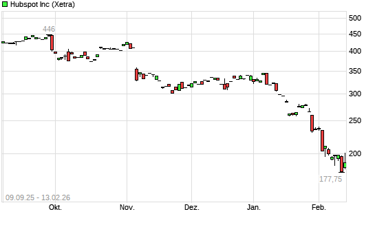 Mit dem Rücksetzer auf 185,45 EUR hat die HubSpot-Aktie (ISIN US4435731009) am 12.02.2026 ein neues 5-Jahres-Tief erreicht und damit den Kurs vom 10.02.2026 ...weiterlesen