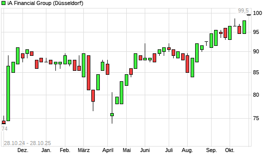 Mit dem Anstieg auf 100,00 EUR hat die IA Financial-Aktie (ISIN CA45075E1043) am 27.10.2025 ein neues All-Time-High erreicht und damit den Kurs vom 08.10.2025 eingestellt.Die IA Financial-Aktie ...weiterlesen